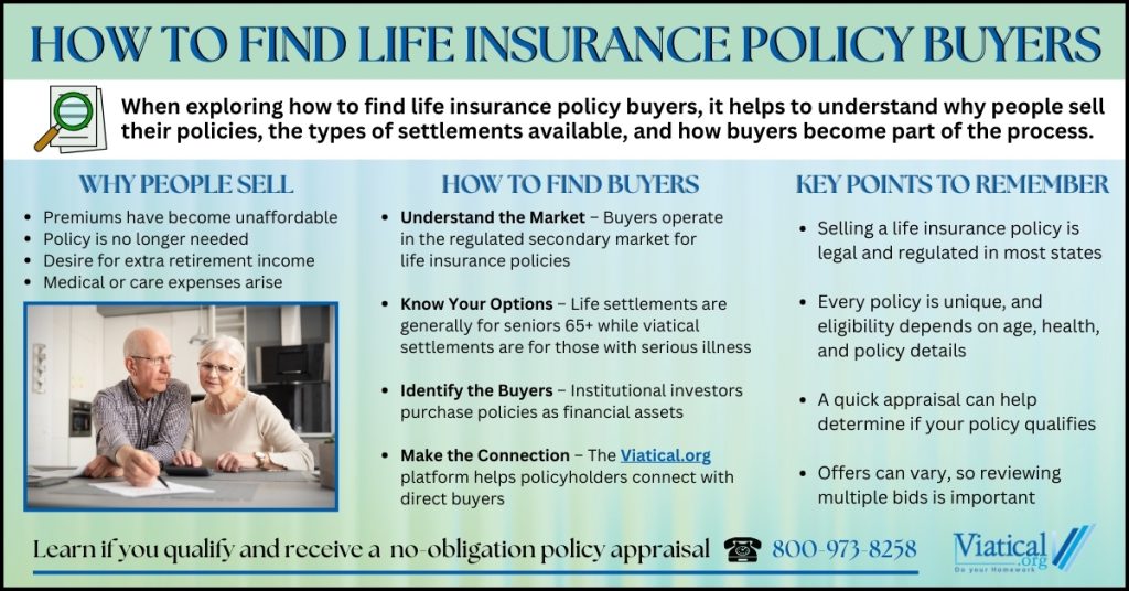 Learning how to find life insurance policy buyers is ultimately about understanding your options. Life settlements and viatical settlements are two powerful ways to turn a policy into cash when you need it most. Through viatical.org, you can connect with direct buyers, explore real offers, and decide whether selling your policy is the right choice for you.